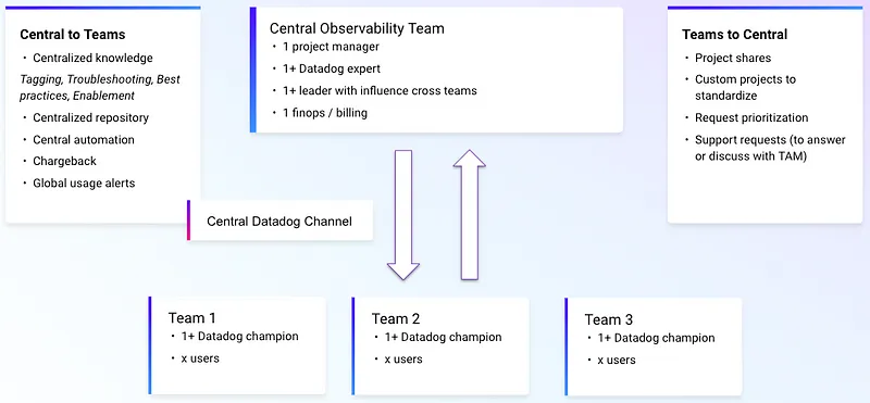 Consider the example of a central observability team facilitating the exchange of success stories and use cases within the organization through community, standardization and tool building. By showcasing the tangible benefits of observability initiatives, such as improved system reliability or enhanced customer experiences, central teams can inspire and motivate teams to embrace observability practices. A clear example can be seen at one of my customers where a tool built by a single team to optimize Kubernetes clusters with clear cost savings has been shared with the rest of the organization.