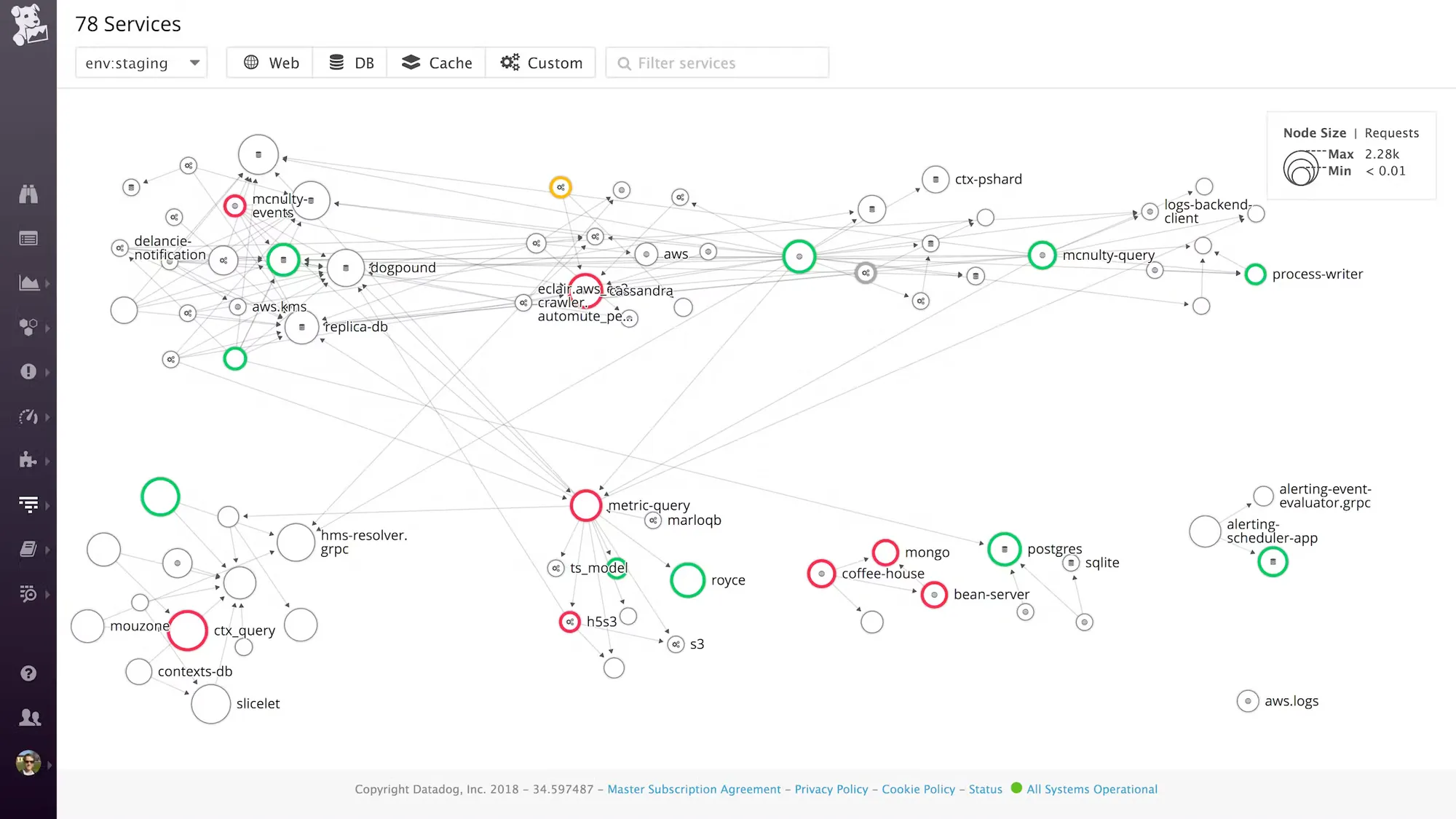 service map with colours related to monitor state