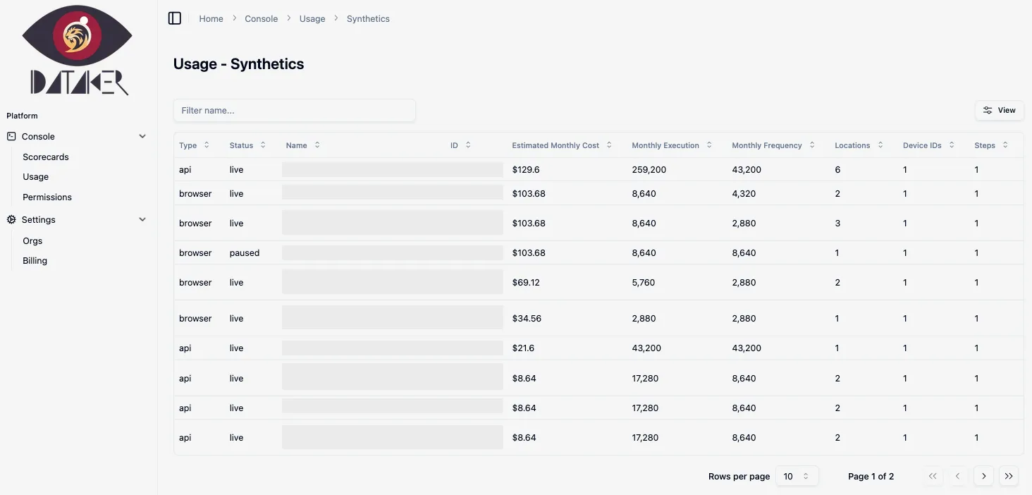With Dataiker’s synthetics usage analytics, you can make data-driven decisions to ensure your synthetic tests deliver maximum ROI—whether you’re improving a new onboarding flow or testing mission-critical user paths.