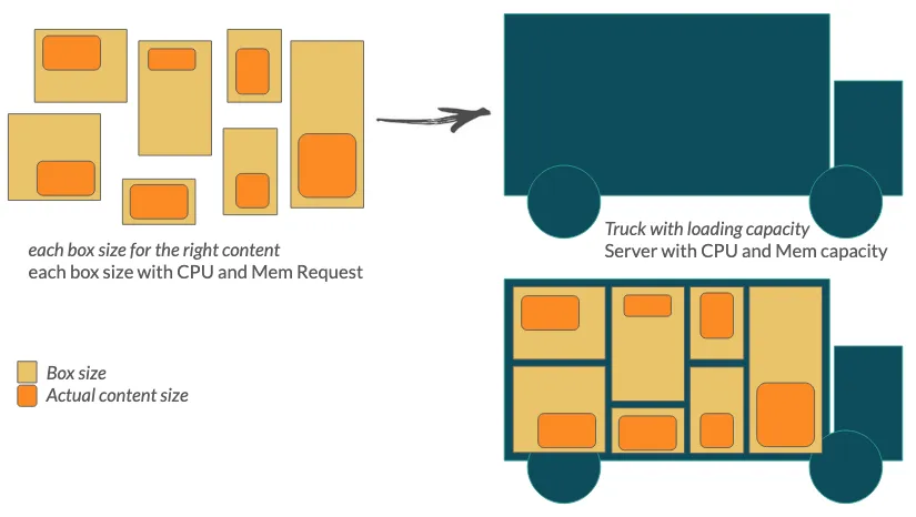The person loading the truck (in this case, Kubernetes) assumes it’s full because all the boxes are taking up room, even though there’s actually plenty of unused capacity inside.