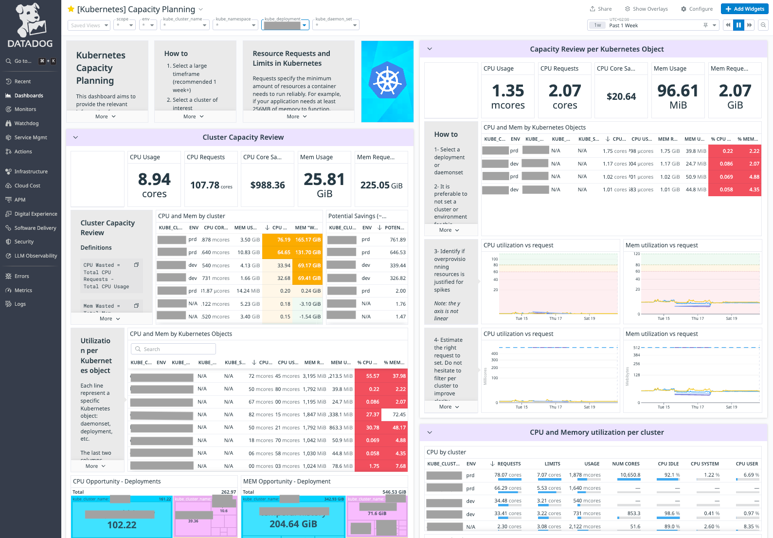 Datadog’s platform provides a real-time comparison of live usage versus requested resources, enabling teams to track inefficiencies.