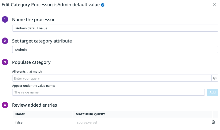 @isAdminusing a category processor. - Then use a lookup processor to adjust values based on specific IP addresses.