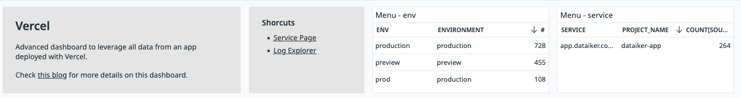 Even thought Datadog provides a standard dashboard for Vercel that provides a good start, with the enhancement just completed, we can go a step further.