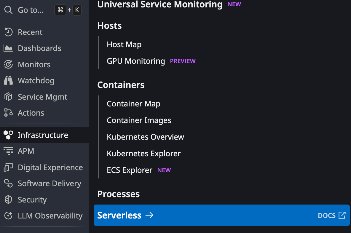 - Navigate to Infrastructure > Serverless.